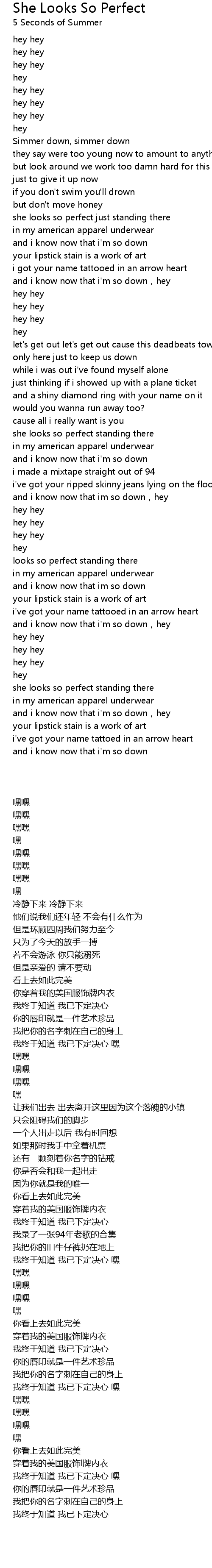 Lyrics For She Looks So Perfect By 5 Seconds Of Summer Songfacts